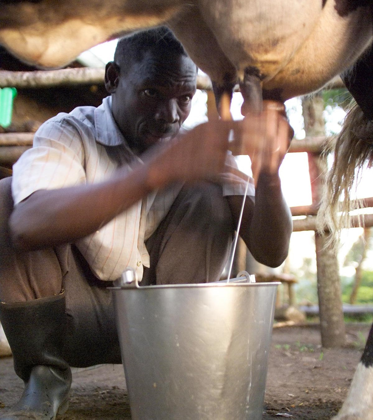 Birungi Headman for Cattle(below) milking Marg at the cattle shed