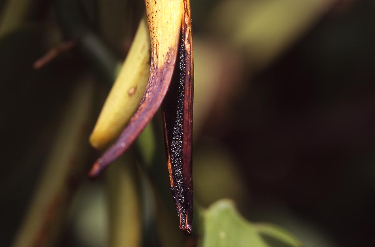 We go to great lengths to produce small batches of heady high vanillin beans – starting with the insistence that the beans come to full maturity on the vine, like this bean in the picture above. This vanilla bean has burst through ripeness, and when nurtured through the curing process to allow its natural, fermented, winey and musky aromas to intensify, will explode in a tumbled network of exquisite downy vanillin crystals.