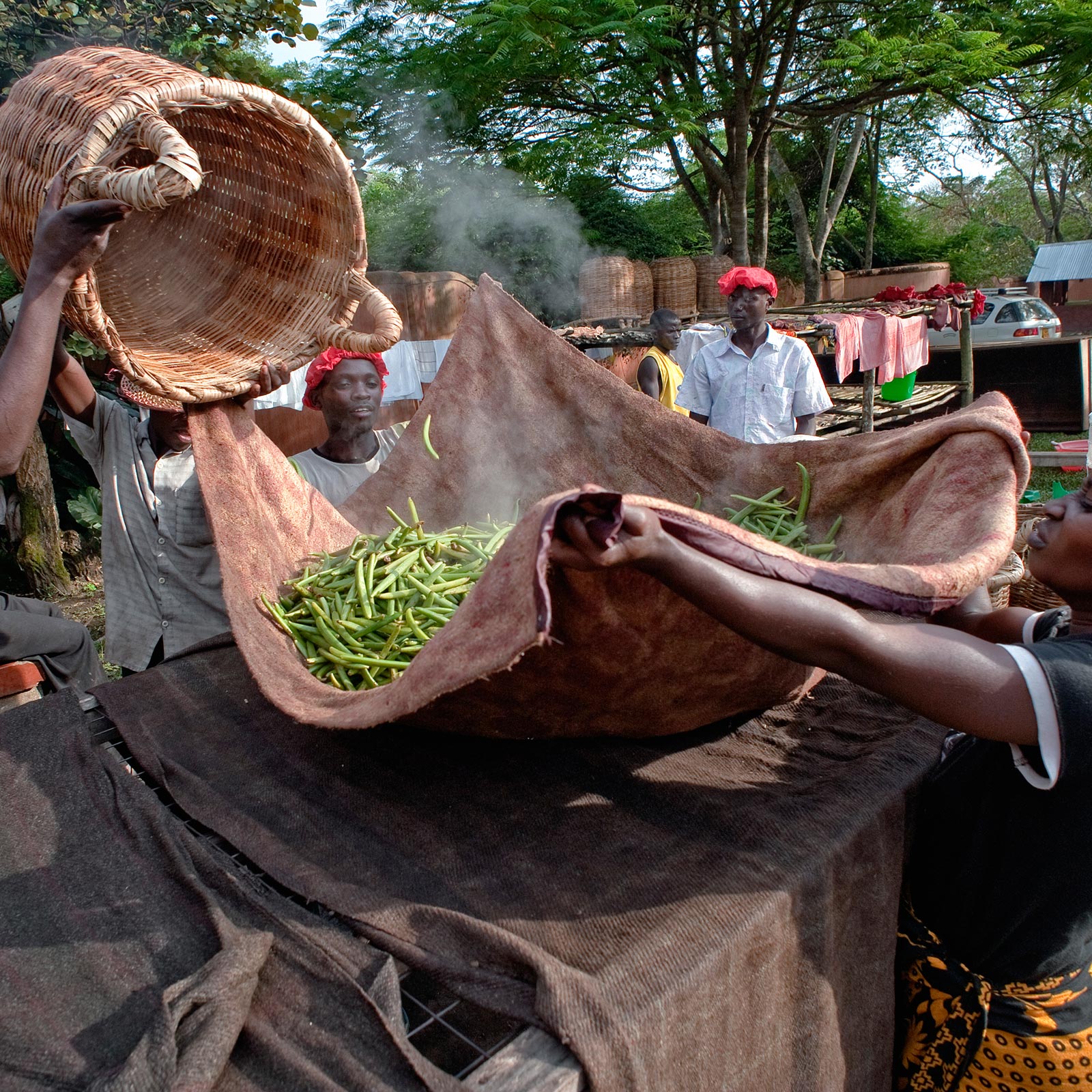 Ndali’s vanilla curing – turning it from the yellowish-green pod to the aromatic fermented chocolate-coloured bean – takes three to six months and involves blanching the beans in hot water (60-63°C) and sweating them in woollen blankets in wooden boxes. Over the weeks they are repeatedly exposed to hot sunshine and returned to their boxes for sweating, encouraging the breakdown of gluco-vanillin into vanillin through fermentation.